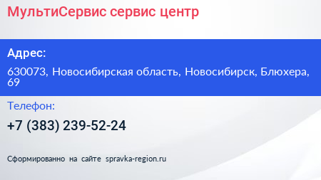 МультиСервис, сервис-центр по адресу 630073, Новосибирская область, Новосибирск, Блюхера, 69 в дальнейшем Организация, размещена в следующих категориях: