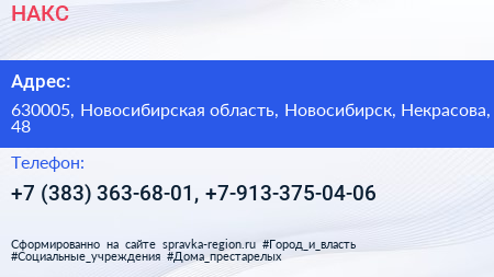 НАКС по адресу 630005, Новосибирская область, Новосибирск, Некрасова, 48 в дальнейшем Организация, размещена в следующих категориях:
