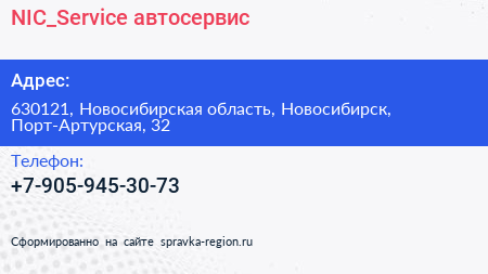 NIC_Service, автосервис по адресу 630121, Новосибирская область, Новосибирск, Порт-Артурская, 32 в дальнейшем Организация, размещена в следующих категориях: