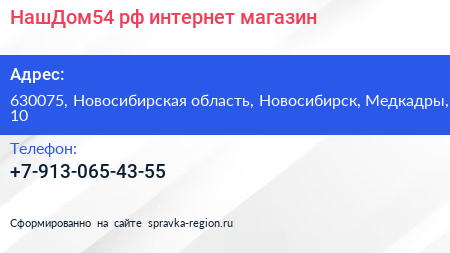НашДом54.рф, интернет-магазин по адресу 630075, Новосибирская область, Новосибирск, Медкадры, 10 в дальнейшем Организация, размещена в следующих категориях: