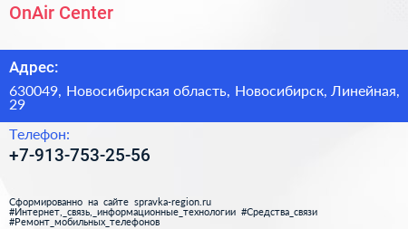 OnAir Center по адресу 630049, Новосибирская область, Новосибирск, Линейная, 29 в дальнейшем Организация, размещена в следующих категориях: