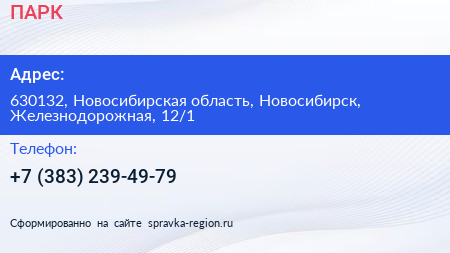 ПАРК по адресу 630132, Новосибирская область, Новосибирск, Железнодорожная, 12/1 в дальнейшем Организация, размещена в следующих категориях: