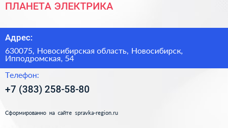 ПЛАНЕТА ЭЛЕКТРИКА по адресу 630075, Новосибирская область, Новосибирск, Ипподромская, 54 в дальнейшем Организация, размещена в следующих категориях: