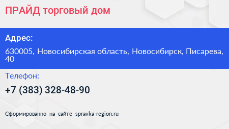ПРАЙД, торговый дом по адресу 630005, Новосибирская область, Новосибирск, Писарева, 40 в дальнейшем Организация, размещена в следующих категориях: