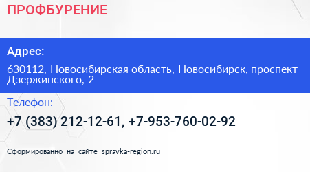 ПРОФБУРЕНИЕ по адресу 630112, Новосибирская область, Новосибирск, проспект Дзержинского, 2 в дальнейшем Организация, размещена в следующих категориях: