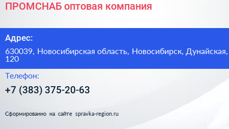 ПРОМСНАБ, оптовая компания по адресу 630039, Новосибирская область, Новосибирск, Дунайская, 120 в дальнейшем Организация, размещена в следующих категориях: