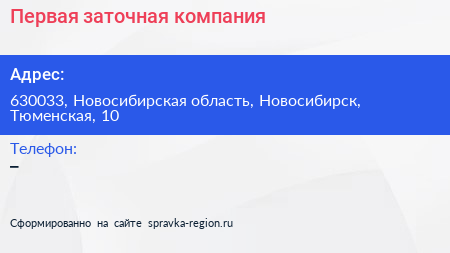 Первая заточная компания по адресу 630033, Новосибирская область, Новосибирск, Тюменская, 10 в дальнейшем Организация, размещена в следующих категориях: