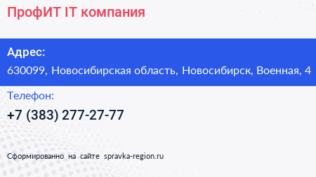 ПрофИТ, IT-компания по адресу 630099, Новосибирская область, Новосибирск, Военная, 4 в дальнейшем Организация, размещена в следующих категориях: