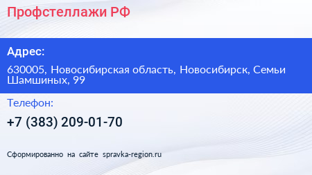 Профстеллажи.РФ по адресу 630005, Новосибирская область, Новосибирск, Семьи Шамшиных, 99 в дальнейшем Организация, размещена в следующих категориях: