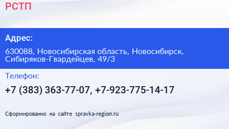 РСТП по адресу 630088, Новосибирская область, Новосибирск, Сибиряков-Гвардейцев, 49/3 в дальнейшем Организация, размещена в следующих категориях: