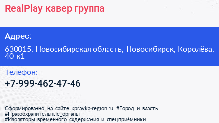RealPlay, кавер-группа по адресу 630015, Новосибирская область, Новосибирск, Королёва, 40 к1 в дальнейшем Организация, размещена в следующих категориях: