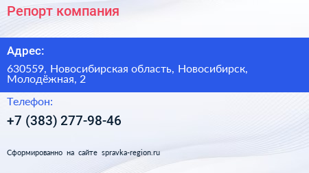 Репорт, компания по адресу 630559, Новосибирская область, Новосибирск, Молодёжная, 2 в дальнейшем Организация, размещена в следующих категориях: