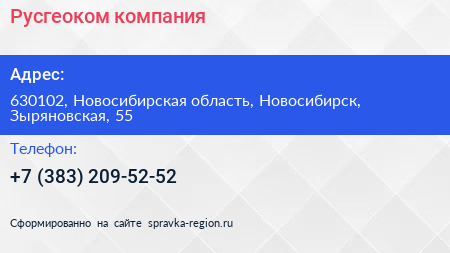 Русгеоком, компания по адресу 630102, Новосибирская область, Новосибирск, Зыряновская, 55 в дальнейшем Организация, размещена в следующих категориях: