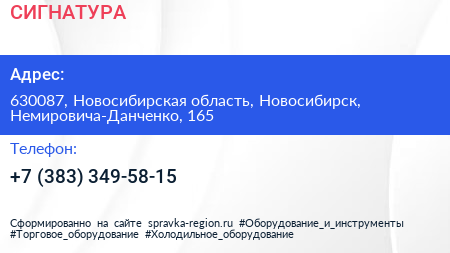 СИГНАТУРА по адресу 630087, Новосибирская область, Новосибирск, Немировича-Данченко, 165 в дальнейшем Организация, размещена в следующих категориях: