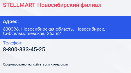 STELLMART, Новосибирский филиал по адресу 630096, Новосибирская область, Новосибирск, Сибсельмашевская, 26а к2 в дальнейшем Организация, размещена в следующих категориях: