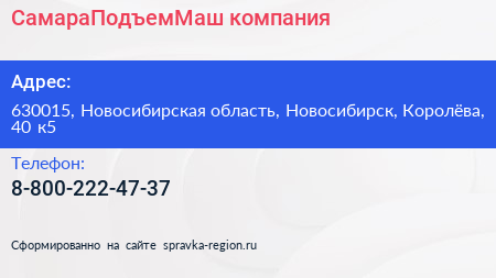 СамараПодъемМаш, компания по адресу 630015, Новосибирская область, Новосибирск, Королёва, 40 к5 в дальнейшем Организация, размещена в следующих категориях: