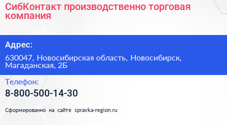 СибКонтакт, производственно-торговая компания по адресу 630047, Новосибирская область, Новосибирск, Магаданская, 2Б в дальнейшем Организация, размещена в следующих категориях: