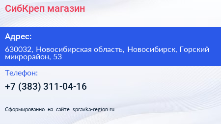 СибКреп, магазин по адресу 630032, Новосибирская область, Новосибирск, Горский микрорайон, 53 в дальнейшем Организация, размещена в следующих категориях: