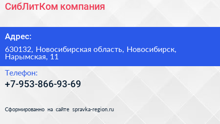 СибЛитКом, компания по адресу 630132, Новосибирская область, Новосибирск, Нарымская, 11 в дальнейшем Организация, размещена в следующих категориях: