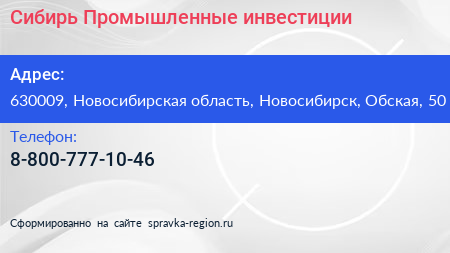 Сибирь-Промышленные инвестиции по адресу 630009, Новосибирская область, Новосибирск, Обская, 50 в дальнейшем Организация, размещена в следующих категориях: