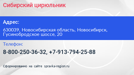 Сибирский цирюльник по адресу 630039, Новосибирская область, Новосибирск, Гусинобродское шоссе, 20 в дальнейшем Организация, размещена в следующих категориях: