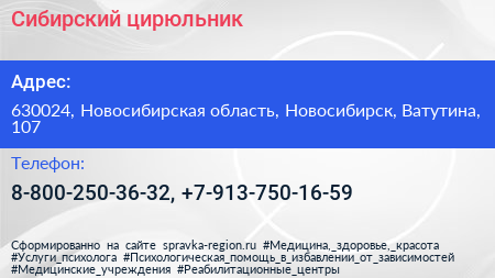 Сибирский цирюльник по адресу 630024, Новосибирская область, Новосибирск, Ватутина, 107 в дальнейшем Организация, размещена в следующих категориях: