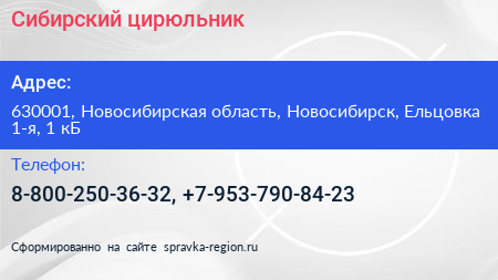 Сибирский цирюльник по адресу 630001, Новосибирская область, Новосибирск, Ельцовка 1-я, 1 кБ в дальнейшем Организация, размещена в следующих категориях: