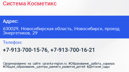 Система Косметикс по адресу 630029, Новосибирская область, Новосибирск, проезд Энергетиков, 29 в дальнейшем Организация, размещена в следующих категориях: