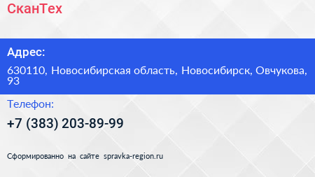 СканТех по адресу 630110, Новосибирская область, Новосибирск, Овчукова, 93 в дальнейшем Организация, размещена в следующих категориях: