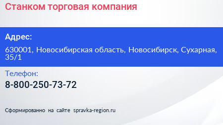 Станком, торговая компания по адресу 630001, Новосибирская область, Новосибирск, Сухарная, 35/1 в дальнейшем Организация, размещена в следующих категориях: