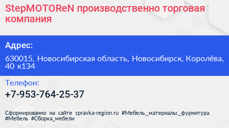 StepMOTOReN, производственно-торговая компания по адресу 630015, Новосибирская область, Новосибирск, Королёва, 40 к134 в дальнейшем Организация, размещена в следующих категориях:
