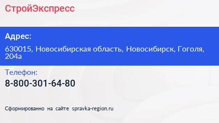 СтройЭкспресс по адресу 630015, Новосибирская область, Новосибирск, Гоголя, 204а в дальнейшем Организация, размещена в следующих категориях: