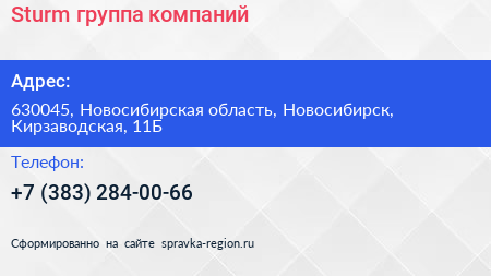 Sturm, группа компаний по адресу 630045, Новосибирская область, Новосибирск, Кирзаводская, 11Б в дальнейшем Организация, размещена в следующих категориях: