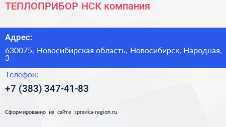ТЕПЛОПРИБОР-НСК, компания по адресу 630075, Новосибирская область, Новосибирск, Народная, 3 в дальнейшем Организация, размещена в следующих категориях: