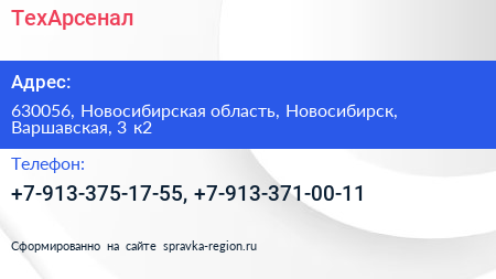 ТехАрсенал по адресу 630056, Новосибирская область, Новосибирск, Варшавская, 3 к2 в дальнейшем Организация, размещена в следующих категориях: