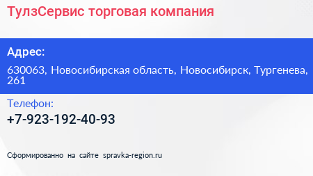 ТулзСервис, торговая компания по адресу 630063, Новосибирская область, Новосибирск, Тургенева, 261 в дальнейшем Организация, размещена в следующих категориях: