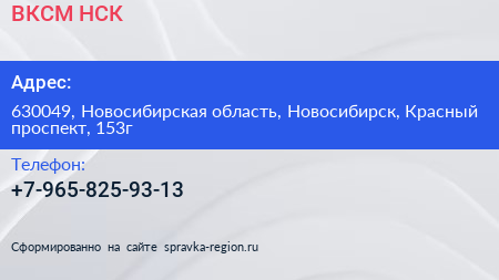 ВКСМ-НСК по адресу 630049, Новосибирская область, Новосибирск, Красный проспект, 153г в дальнейшем Организация, размещена в следующих категориях: