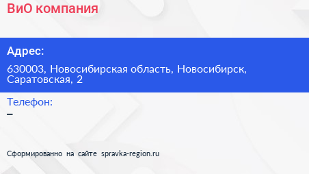 ВиО, компания по адресу 630003, Новосибирская область, Новосибирск, Саратовская, 2 в дальнейшем Организация, размещена в следующих категориях: