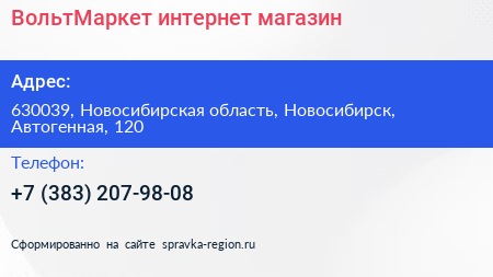 ВольтМаркет, интернет-магазин по адресу 630039, Новосибирская область, Новосибирск, Автогенная, 120 в дальнейшем Организация, размещена в следующих категориях: