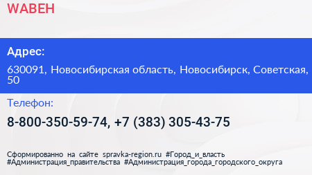 WABEH по адресу 630091, Новосибирская область, Новосибирск, Советская, 50 в дальнейшем Организация, размещена в следующих категориях: