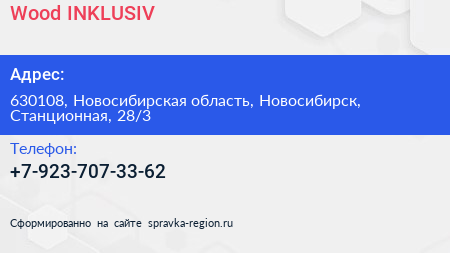 Wood INKLUSIV по адресу 630108, Новосибирская область, Новосибирск, Станционная, 28/3 в дальнейшем Организация, размещена в следующих категориях: