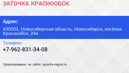 ЗАТОЧКА КРАСНООБСК по адресу 630501, Новосибирская область, Новосибирск, посёлок Краснообск, 246 в дальнейшем Организация, размещена в следующих категориях: