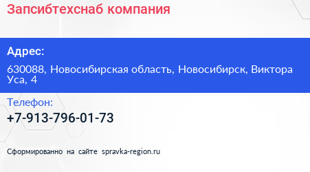 Запсибтехснаб, компания по адресу 630088, Новосибирская область, Новосибирск, Виктора Уса, 4 в дальнейшем Организация, размещена в следующих категориях: