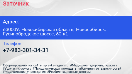 Заточник по адресу 630039, Новосибирская область, Новосибирск, Гусинобродское шоссе, 60 к1 в дальнейшем Организация, размещена в следующих категориях: