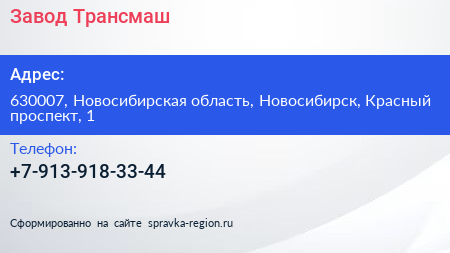Завод Трансмаш по адресу 630007, Новосибирская область, Новосибирск, Красный проспект, 1 в дальнейшем Организация, размещена в следующих категориях: