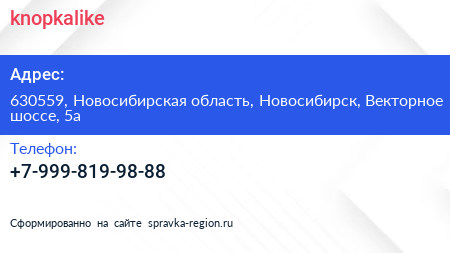 knopkalike по адресу 630559, Новосибирская область, Новосибирск, Векторное шоссе, 5а в дальнейшем Организация, размещена в следующих категориях: