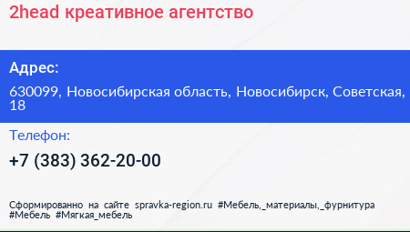 2head, креативное агентство по адресу 630099, Новосибирская область, Новосибирск, Советская, 18 в дальнейшем Организация, размещена в следующих категориях: