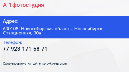 А-1, фотостудия по адресу 630108, Новосибирская область, Новосибирск, Станционная, 30а в дальнейшем Организация, размещена в следующих категориях: