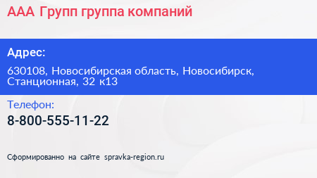 ААА Групп, группа компаний по адресу 630108, Новосибирская область, Новосибирск, Станционная, 32 к13 в дальнейшем Организация, размещена в следующих категориях: