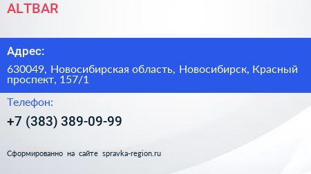 ALTBAR по адресу 630049, Новосибирская область, Новосибирск, Красный проспект, 157/1 в дальнейшем Организация, размещена в следующих категориях: